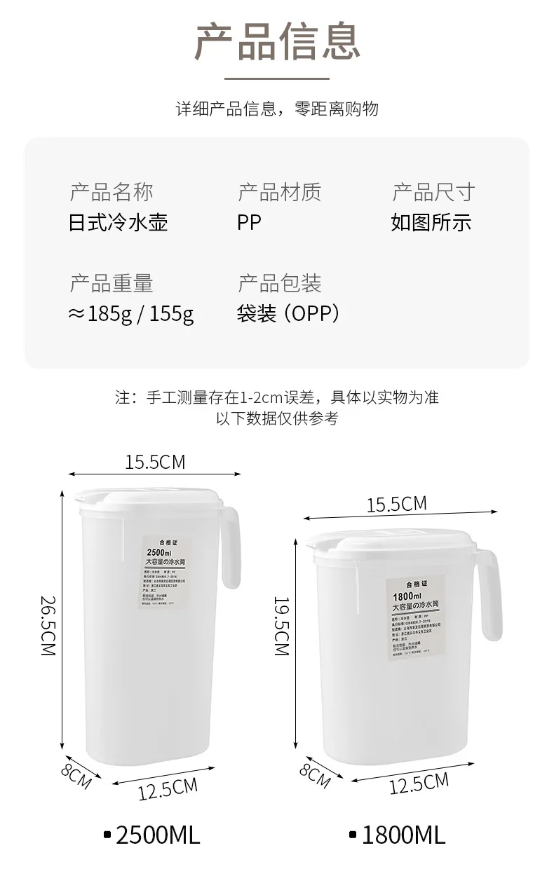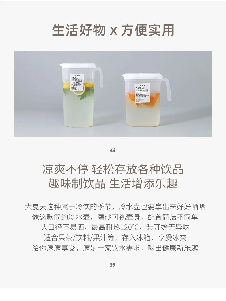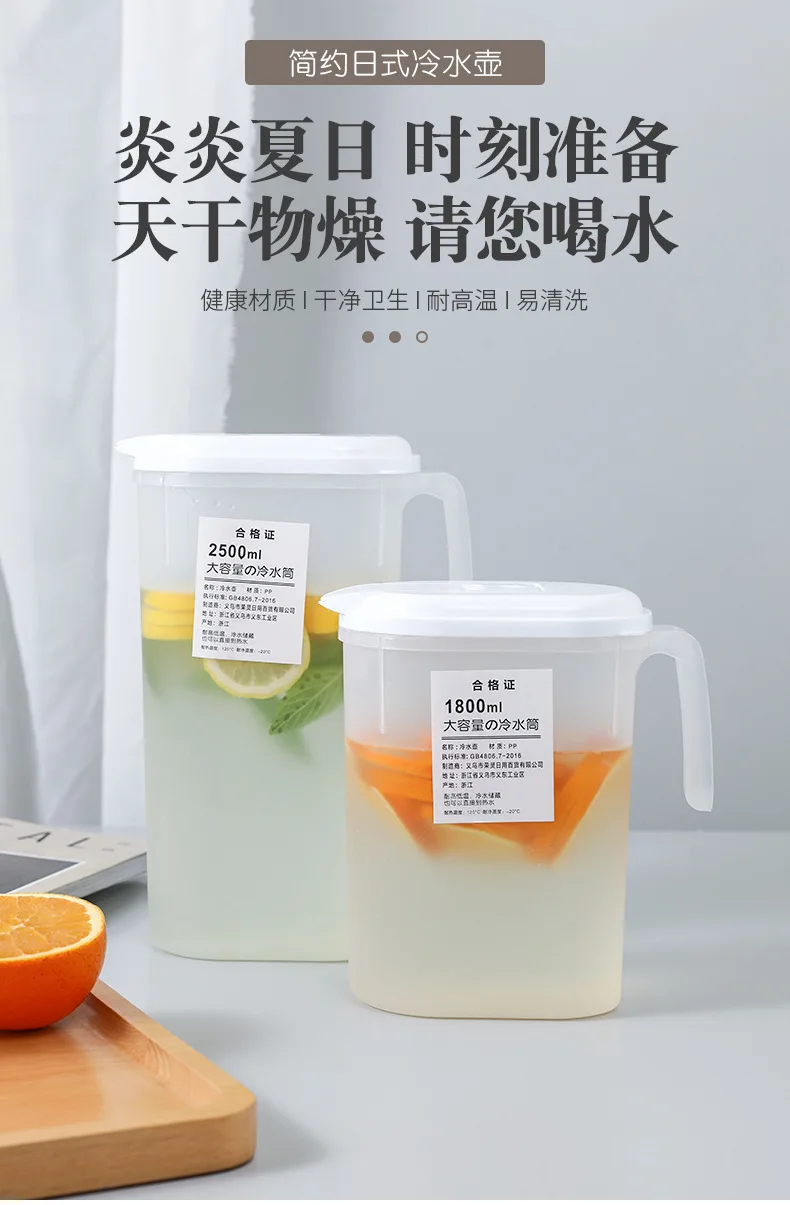 2000ML Large Capacity Beverage Storage Container Heat Resistant Cold Water Jug Plastic Juice Pitcher Household Teapot Kettle