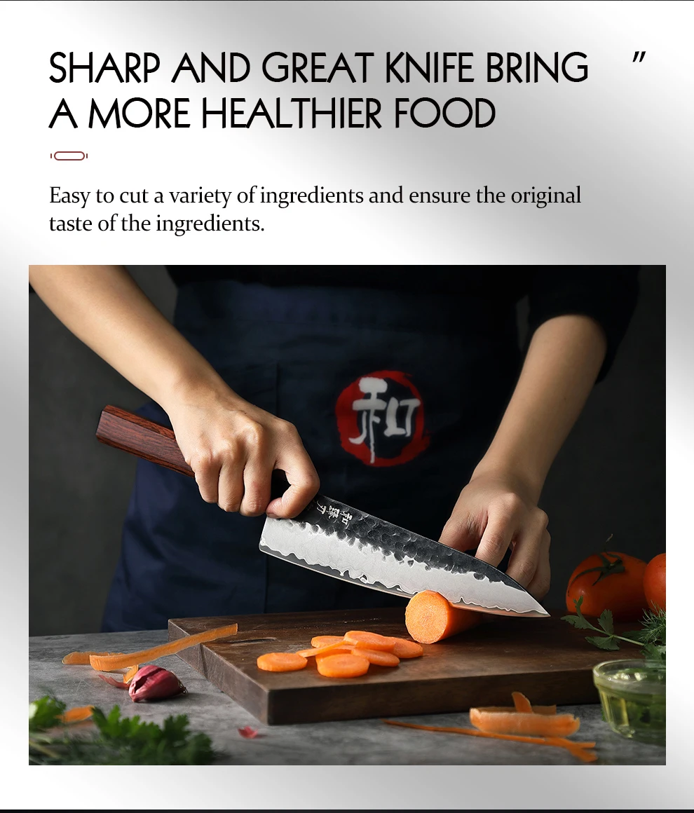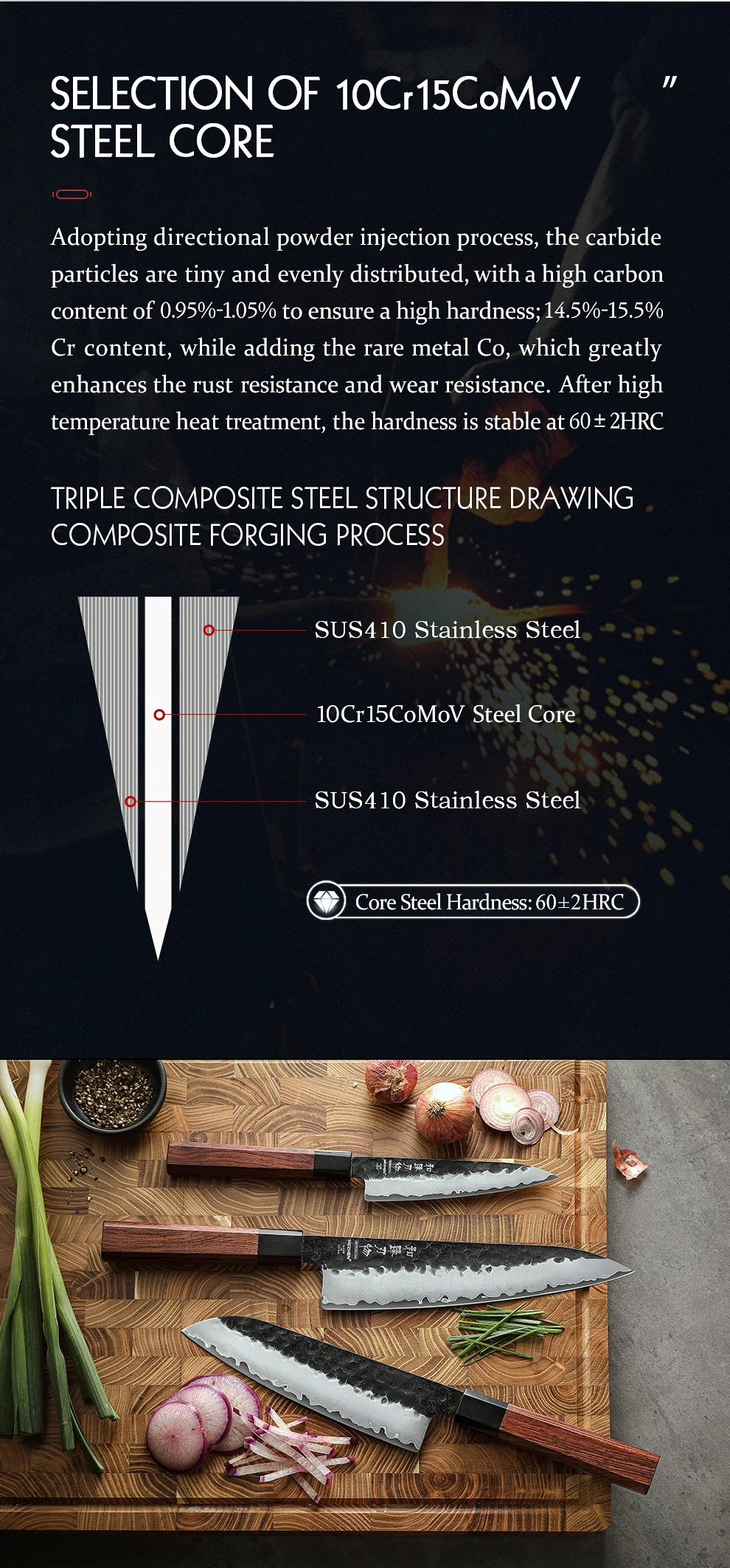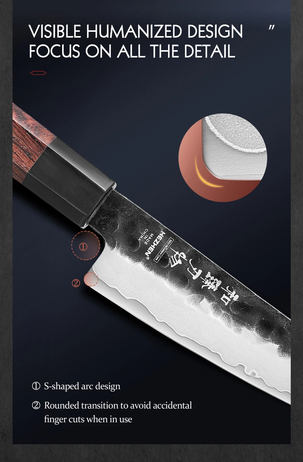 HEZHEN 1-3PC Kitchen Knife Set Chef Utility Santoku Professional Clad Steel Japanese Cook For Meat Kitchen Knife Red Wood
