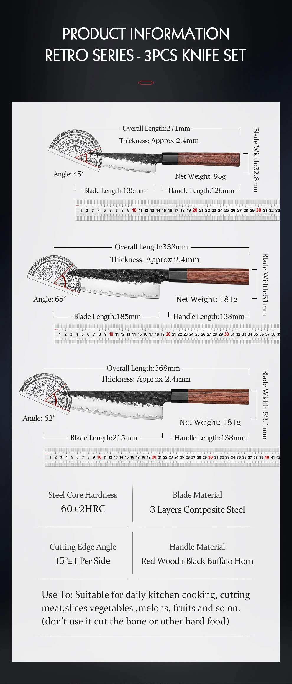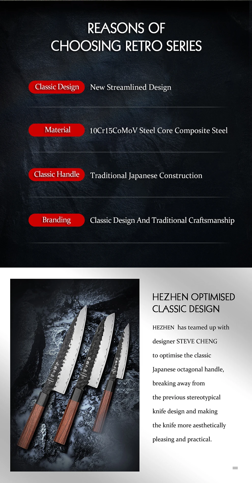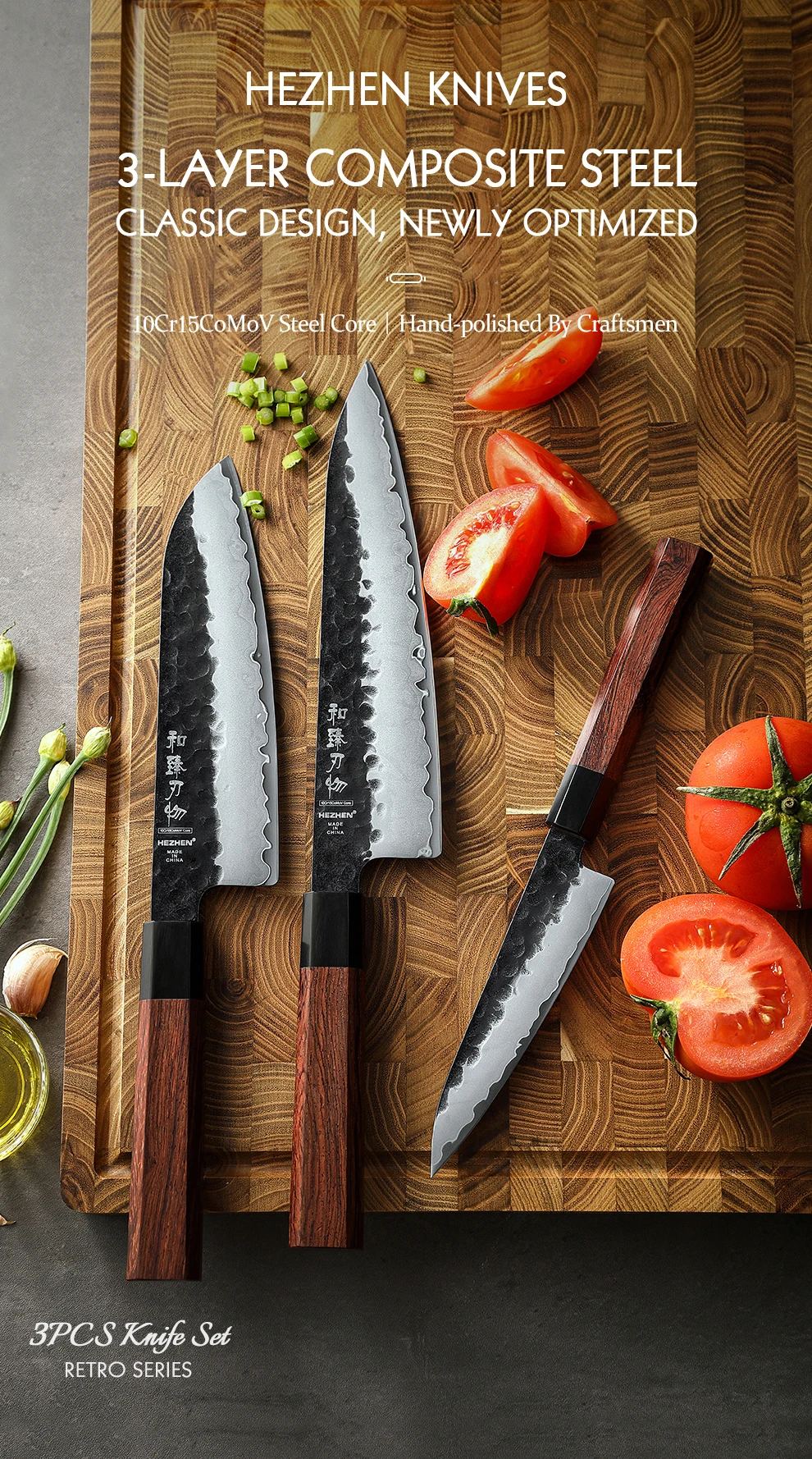 HEZHEN Retro Series 3PC Kitchen Knife Set